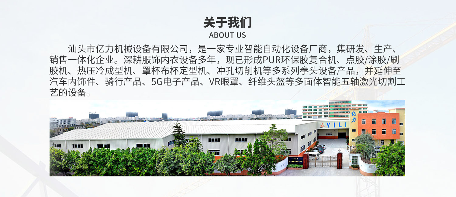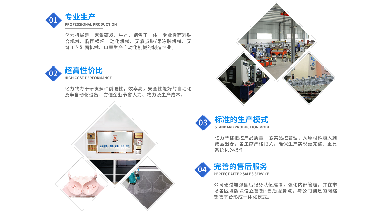 汕頭市億力機械設備有限公司網站正式上線! 汕頭市億力機械設備有限公司是一家集研發(fā)、生產銷售于一體的專業性面料貼合機械、胸圍模杯機械、無縫工藝鞋面機械、口罩生產線和焊耳帶機械企業。